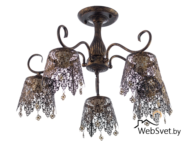 Размеры светильника: Высота 37см, Диаметр 50см, Количество лампочек 5шт накаливания или светодиодные, Максимальная мощность 60Вт, Цоколь Е27